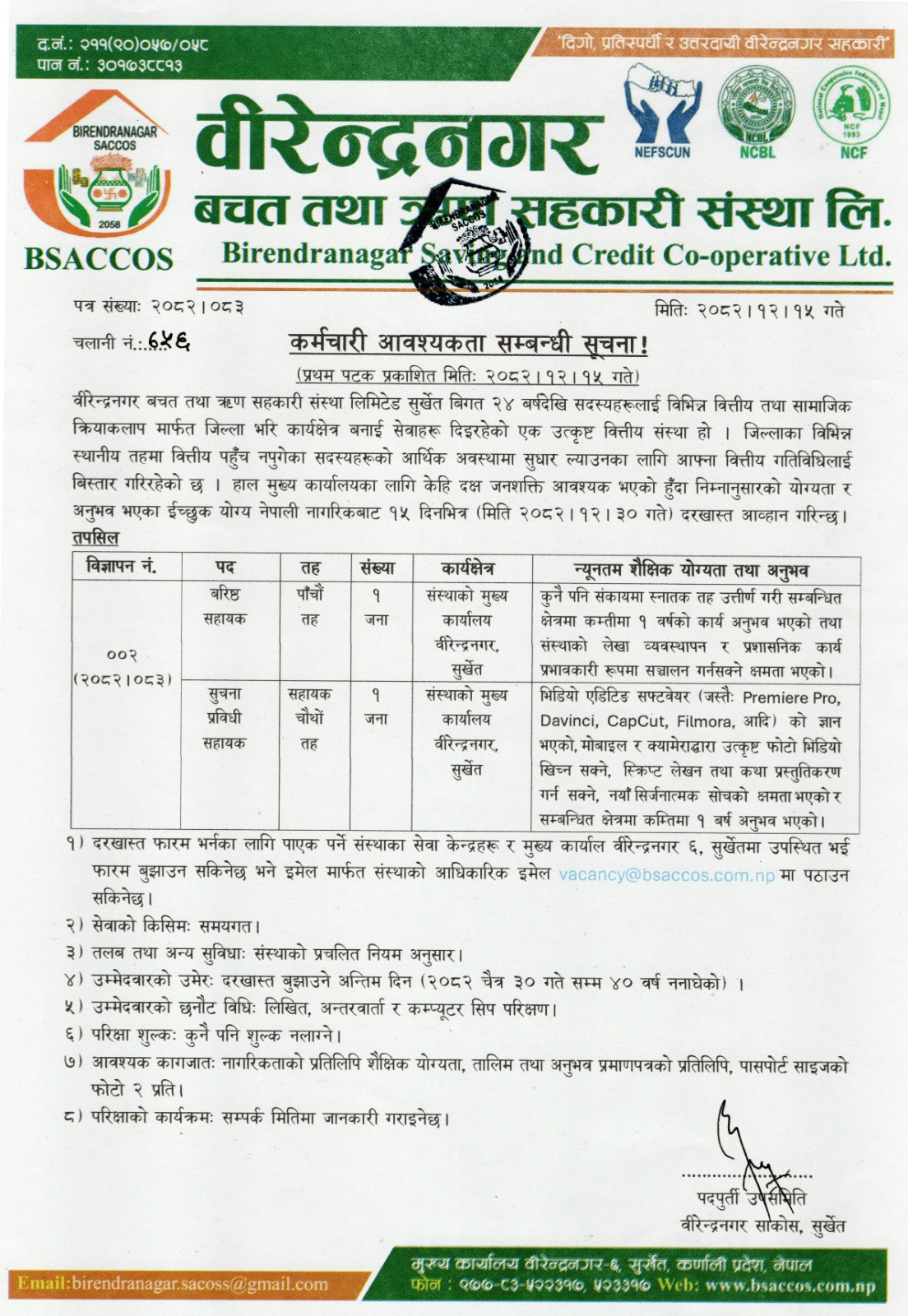 वीरेन्द्रनगर SACCOS ले विगतमा विभिन्न आरोह अवरोहहरूसँग मुकावला गर्यो । स्थापनाका सुरू वर्षहरूमा २७ जना सदस्य, १ जना कर्मचारीले एउटा कोठाबाट १० बर्षसम्म कार्यालय सञ्चालन गरेर अत्यन्त संघर्षपूर्ण तर गौरवपूर्ण दिनहरू यसले व्यतित गरेको छ । संस्थाको जीवनमा कैयौं उतारचढावहरू आए । कठिनभन्दा कठिन समस्याहरू आए । यसमा विगतमा संस्थाको नेतृत्व गर्नु हुने महानुभावहरूको योगदान अतुलनीय र अमूल्य रहेको छ । वीरेन्द्रनगरमा वसोवास गर्ने बुद्धिजीवि, व्यापारी, कर्मचारी, किसान र सर्वसाधारणहरूसंग समन्वय गरी सहकारी विकासका लागि प्रयासहरू गरिएको थियो । व्यावसायिक क्षमता विस्तार र सदस्यहरूलाई सेवा प्रदान गर्न सुर्खेत जिल्लामा सहकारी संस्था मार्फत एम्बुलेन्स सेवा सञ्चालन गर्ने पहिलो संस्था हो ।