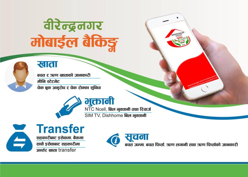 “प्रविधिमा सहकारी” भन्ने मूल नारालाई आत्मसात गर्दै, वीरेन्द्रनगर साकोसले सदस्यलाई डिजिटल प्रविधिमैत्री सेवा प्रदान गर्ने उद्देश्यले मोबाइल एप सेवा उपलब्ध गराउँदै आएको छ।