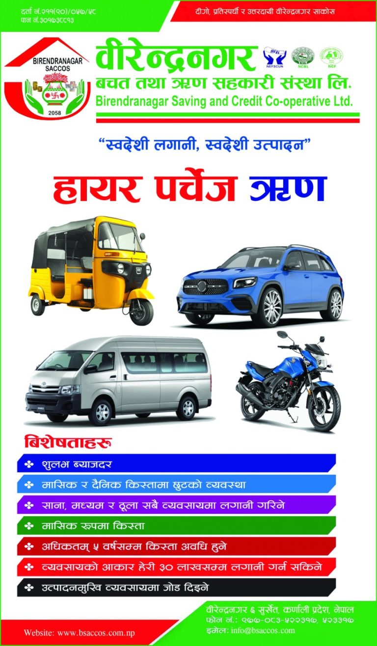 उत्पादनमुखि व्यवसायमा जाेड दिइ, व्यवसायको आकार हेरी ३० लाख सम्म लगानी गर्न सकिने ।